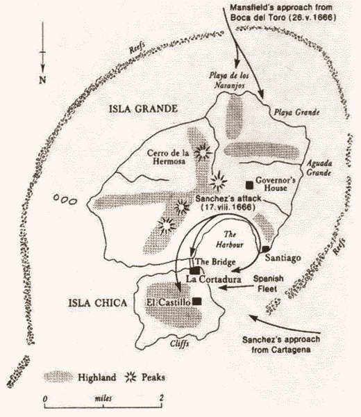 Захват Э. Мансфелтом острова Санта-Каталина (Провиденсия). Карта из книги П. Эрла