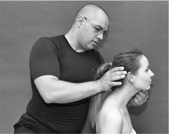 Врач кладет человеку одну руку на лоб, а большой и указательный пальцы другой руки – на второй шейный позвонок. Далее он осуществляет давление на лоб и второй шейный позвонок в течение одной-двух минут без движения. Во время этой манипуляции сочленение первого и второго позвонков, при их нестабильности, приходит в естественное анатомическое положение.