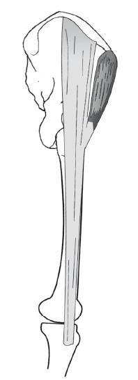 Малая ягодичная мышца является одной из отводящих мышц. Она расположена в более глубоком слое и перекрывается средней ягодичной мышцей. Благодаря своему расположению и ориентации волокон она преимущественно выступает в качестве сгибателя бедра, несмотря на то что при сокращении вместе с остальными отводящими мышцами участвует в отведении ноги (смотри с. 140).
