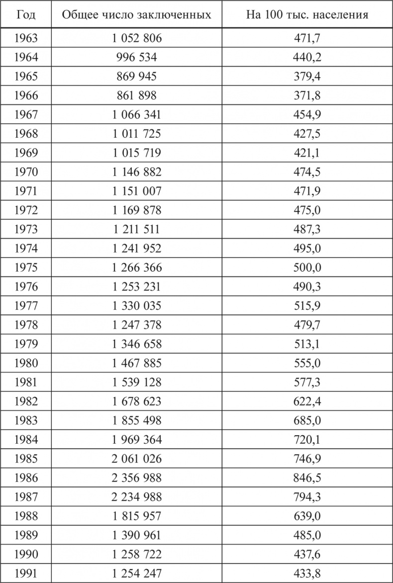Таблица 7. Динамика численности заключенных в СССР (1936-1991 гг.)