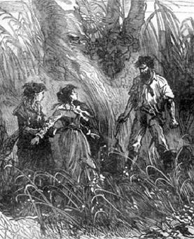 А Клаас углубился примерно на километр и свернул вправо — то есть пошел вперед параллельно течению Замбези. Он знал, что неподалеку от водопада найдет в базальтовой стене пещеру, и рассчитывал, что обе пленницы смогут в ней переждать, покуда он отправится на поиски братьев, с которыми надеялся легко помириться.