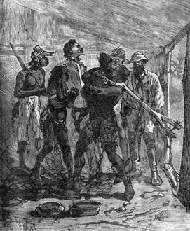 Крик радости вырвался у чернокожих, когда они увидели, что возмездие близко. Но другие работорговцы, сообразив, что положение становится угрожающим, приготовились к борьбе.
