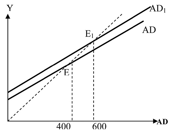 Нам остается нарисовать влияние мультипликатора на увеличение конечного выпуск от 400 до 600.