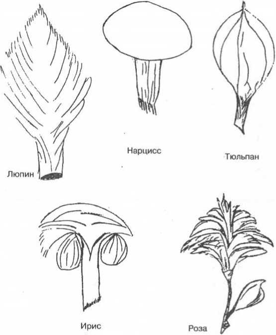 Кроме того, отсутствие у Джона цветового зрения предполагает, что нарушена была также и область, заведующая определением цвета, V4, которая, что неудивительно, располагается в той же области мозга, где распознаются лица, в веретенообразной извилине. Основные симптомы Джона частично можно объяснить повреждением особых аспектов зрительной функции, но некоторые из них так объяснить нельзя. Один из самых интригующих симптомов проявился, когда его попросили нарисовать по памяти цветы. На рис. 2.11 показаны рисунки Джона, которые он уверенно подписал как розу, тюльпан и ирис. Обратите внимание, что сами рисунки хороши, но они совершенно не похожи на какие-либо известные нам цветы! Такое впечатление, будто у Джона есть некое общее понятие о цветке, и, не имея доступа к памяти о реальных цветах, он нарисовал нечто, что можно назвать несуществующими марсианскими цветами.