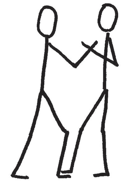 Сначала я не понял, что это такое. Выглядела эта конструкция, как рыба Инь-Ян (два глазика, S-образная линия), только какая-то непривычно угловатая. Но тут же до меня дошло: это же два человека, скрестившие правые запястья. А Мо – молодец, для того чтобы помочь мне уловить сходство с символом Инь-Ян, он одному из бойцов волосы заштриховал черным, а второго «оставил блондином». Правда, я все равно сразу не догадался, что это такое, потому что положения толкающих рук сверху я никогда не видел.