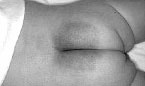 Монголоидное пятно – синеватая окраска кожи, наблюдающаяся преимущественно у детей монголоидной расы в области крестца, реже – ягодиц, бедра, за счет залегания пигмента меланина в соединительнотканном слое кожи. Эти пятна появляются на второй или третий день после рождения и исчезают к началу третьего года жизни, однако крайне редко остаются в слабом виде у взрослых. В свою очередь, присутствие этих пятен на крестце европеоидов весьма точно свидетельствует о наличии той или иной расовой примеси. Цвет «монгольских пятен» бывает большей частью темно-синим или синевато-черным, а у индейцев – зеленовато-черным. Пигментные изменения могут определяться не только в «сакральной» области, но, в редких случаях, как видно на рисунке, и на других частях кожи ребенка.