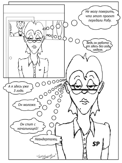 У Кейт налицо эти симптомы, так как она считает, что с ней обошлись несправедливо. Чтобы ситуация стала более приемлемой, ее нужно переоценить или переобозначить. Например, Кейт могла бы решить для себя, что для нее уже приготовлен еще лучший проект, с которым никто, кроме нее, не справится. Или что в вопросе о том, кому доверить проект, босс лучше разбирается, и нужно просто довериться ему, так что эта ситуация совершенно нормальная. Или Кейт могла бы убедить себя в том, что существующая система справедлива, так что произошедшее можно считать благословенной переменой, от которой в долгосрочной перспективе выиграют все.
