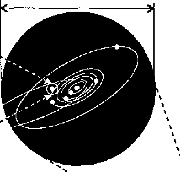 Рис. 6. Огромные размеры известной нам части Вселенной. Каждая последующая черная сфера в тысячу раз больше, чем предыдущая. См. текст настр. 23―24.