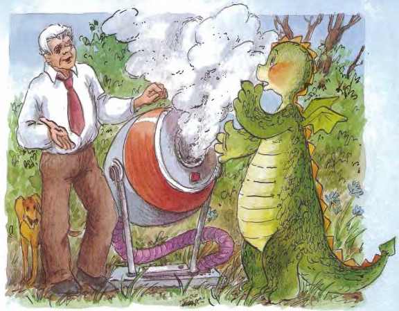 — Лучше я тебе покажу своё последнее изобретение! Вот это уж подарок, так подарок! — Пал Палыч подвёл Дракошу к странному сооружению в глубине двора. Выглядело оно как нечто среднее между пылесосом и бетономешалкой.